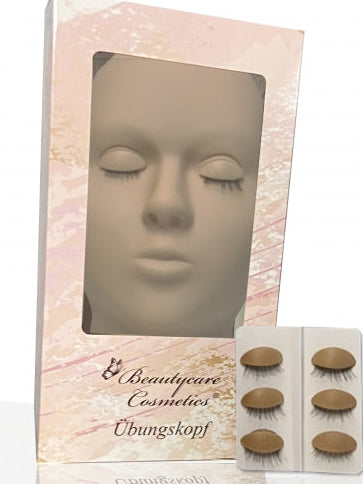 Sie erwerben hier einen Profi-Übungskopf zum erlernen der Kunst der Wimpernverlängerung. im Set enthalten sind 4 Paare Übungswimpern mit Augenlid. hier können Sie die Augen nicht nur "Bekleben" sondern auch "Removen" so sind die Wimpern mit Augenlid wiederverwendbar. ein zweiter Vorteil ist ein oben sitzendes Augenlid. so kleben die Kunstwimpern nicht mehr auf dem Pad und das erlernen der Kunst der Wimpernverlängerung wird nahezu zu einer realistischen Anwendung.